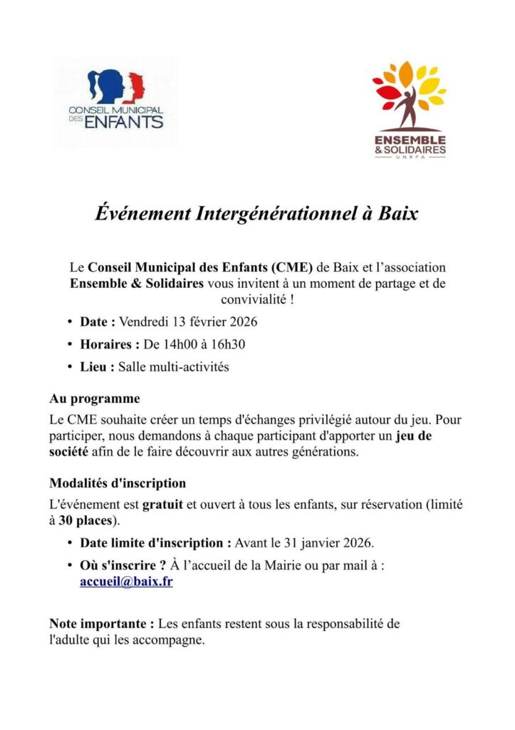 ÉVÉNEMENT INTERGÉNÉRATIONNEL LE 13 FÉVRIER 2026 À BAIX